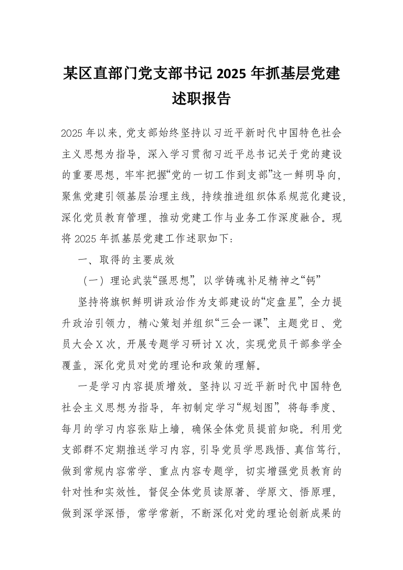 首页讲课讲稿某区直部门党支部书记2025年抓基层党建述职报告