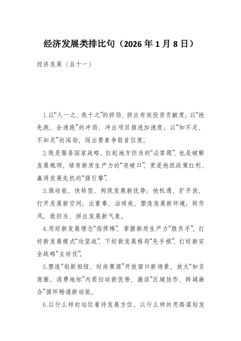 经济发展类排比句(2026年1月8日)