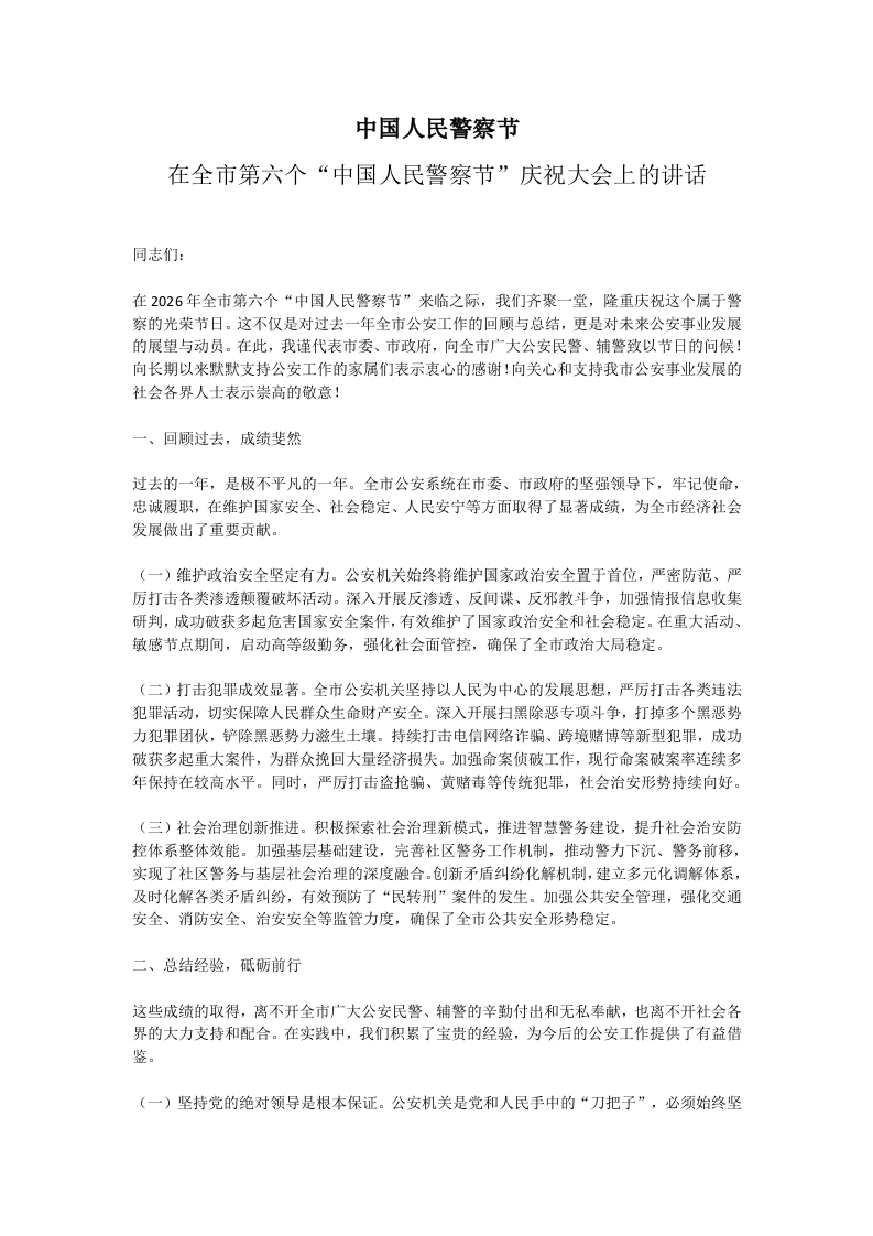 首页写作素材第六个人民警察节庆祝大气发言讲话PPT模板下载(讲稿)