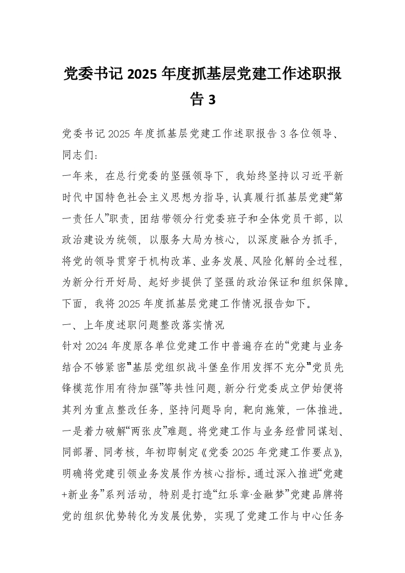 党委书记2025年度抓基层党建工作述职报告3