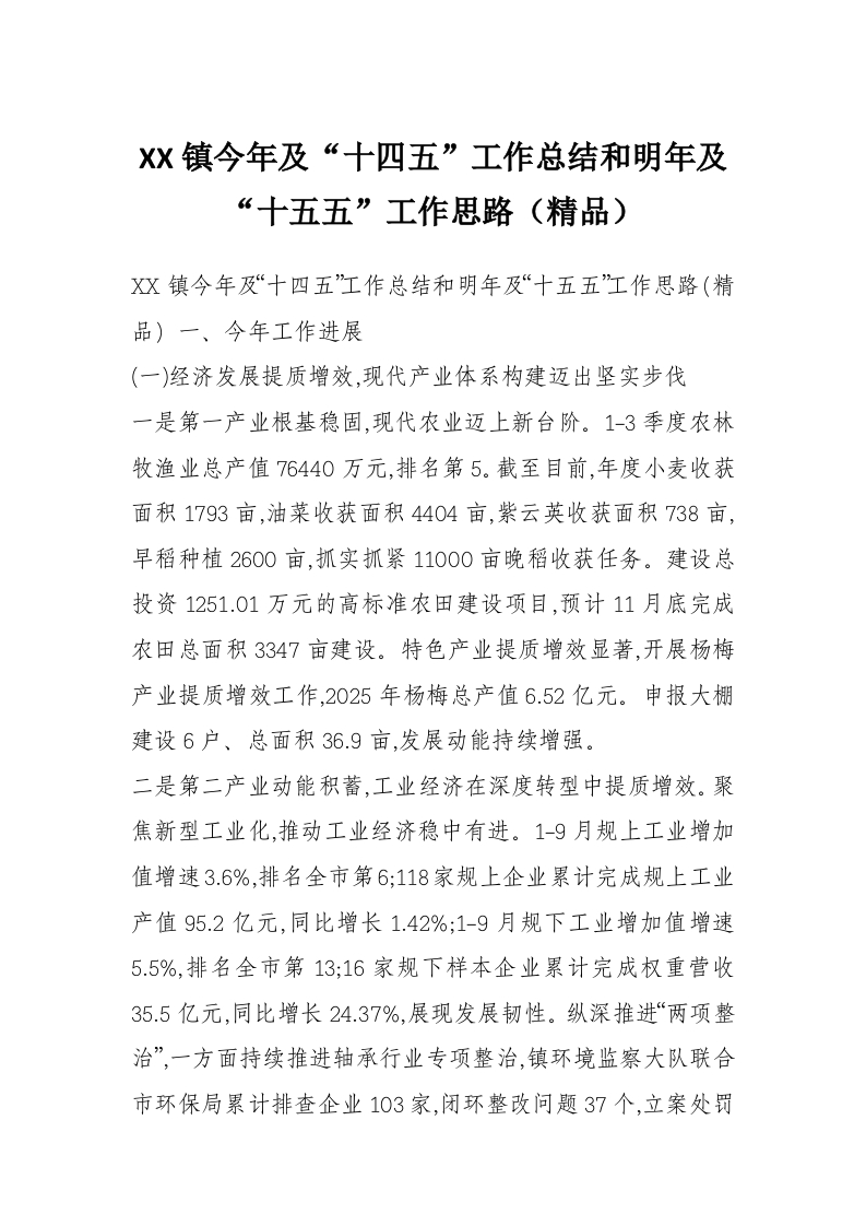 XX镇今年及“十四五”工作总结和明年及“十五五”工作思路(精品)