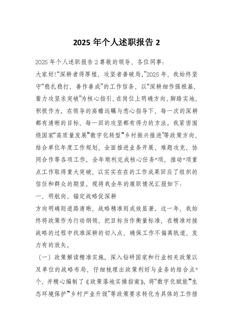 2025年个人述职报告2