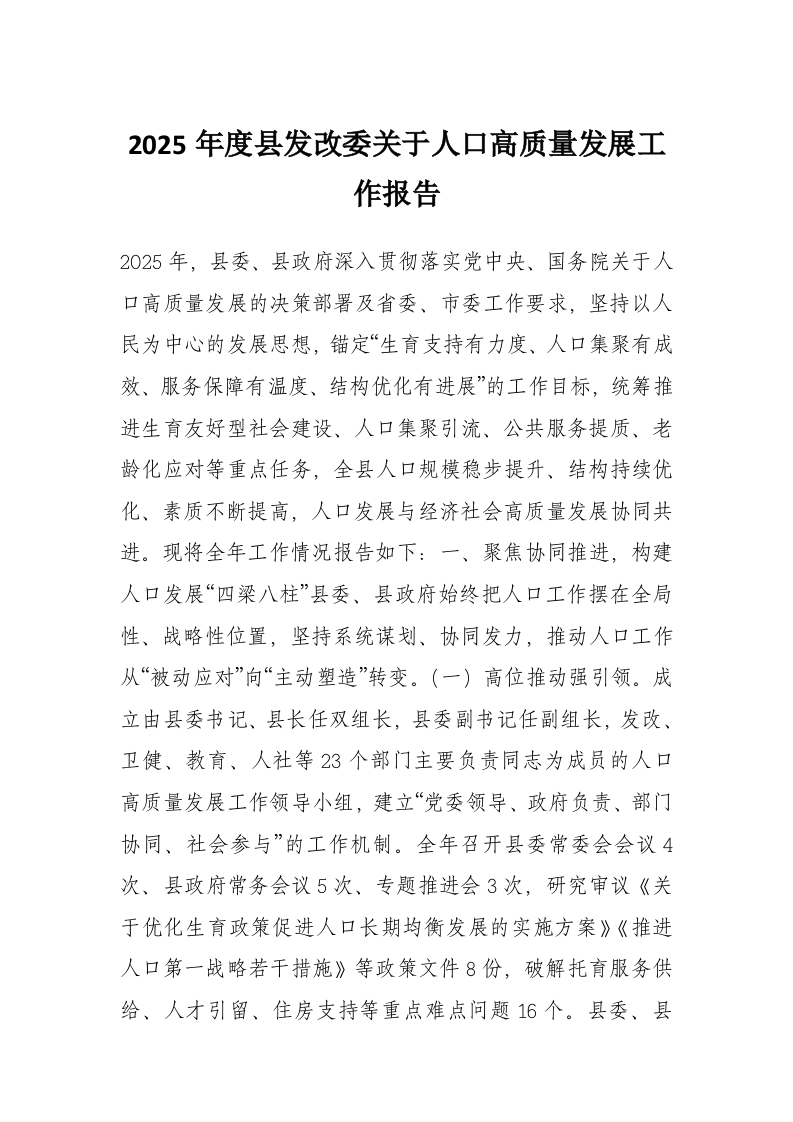 首页学习提升2025年度县发改委关于人口高质量发展工作报告