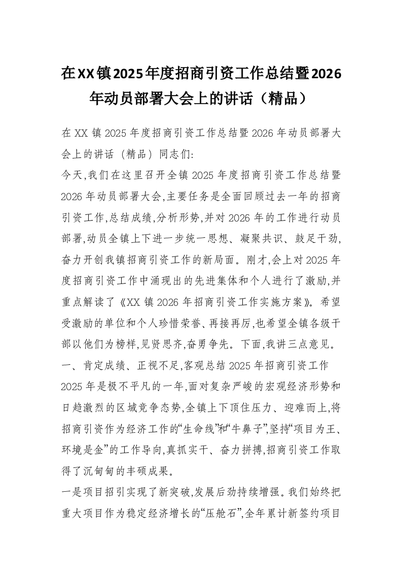在XX镇2025年度招商引资工作总结暨2026年动员部署大会上的讲话(精品)