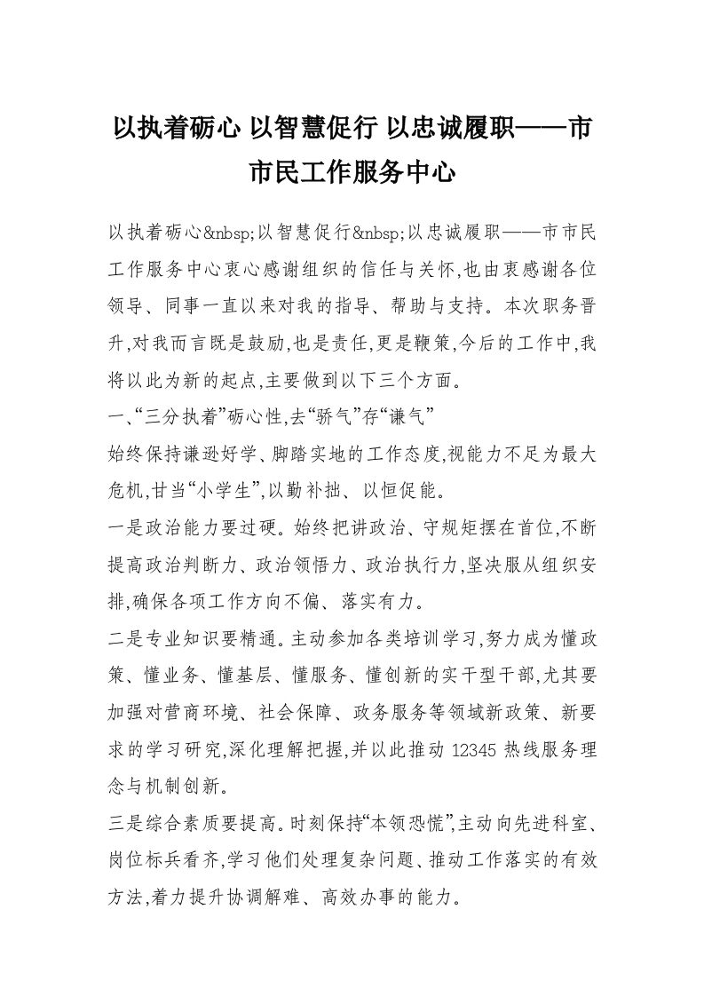 首页讲课讲稿以执着砺心 以智慧促行 以忠诚履职——市市民工作服务中心