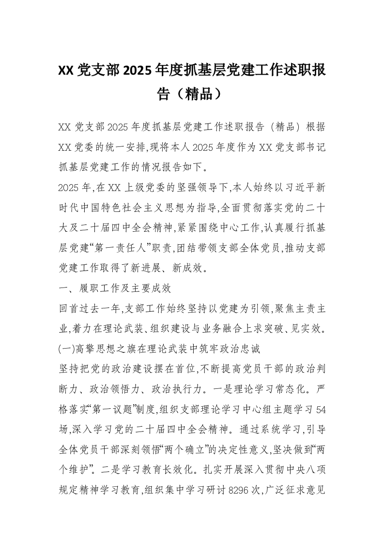 XX党支部2025年度抓基层党建工作述职报告(精品)