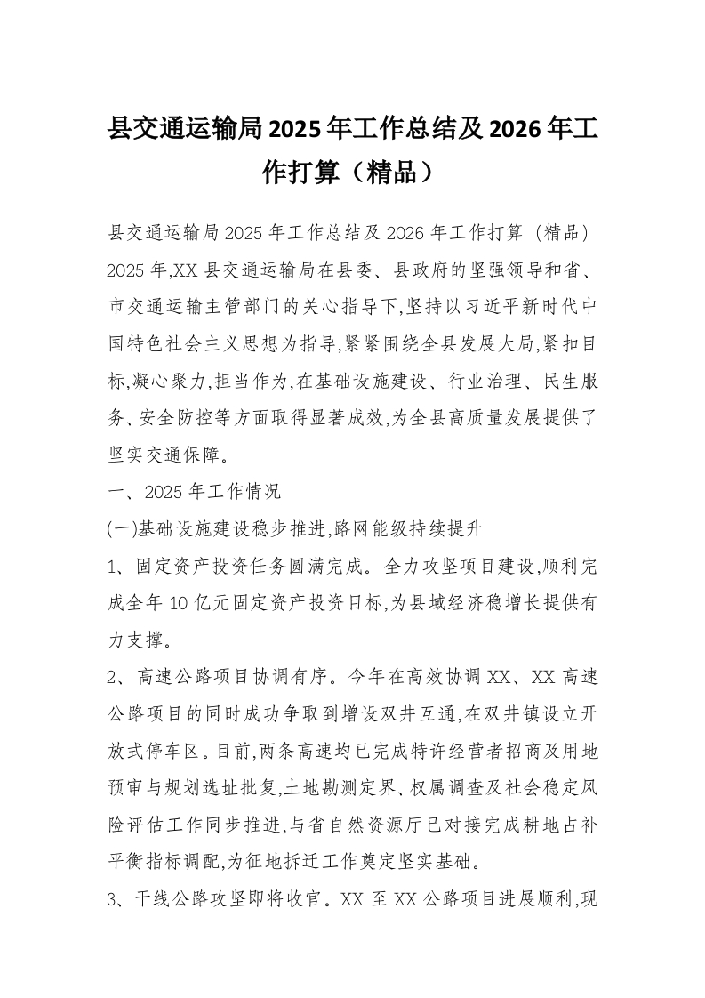 县交通运输局2025年工作总结及2026年工作打算(精品)