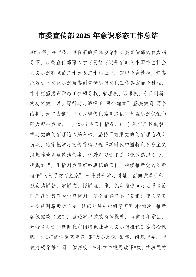 首页材料汇编市委宣传部2025年意识形态工作总结