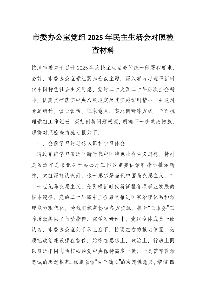 首页材料汇编市委办公室党组2025年民主生活会对照检查材料