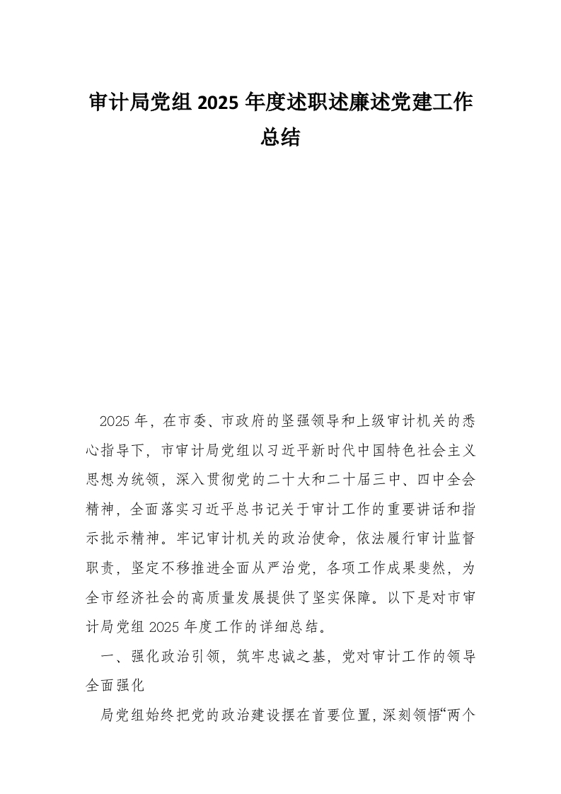 首页材料汇编审计局党组2025年度述职述廉述党建工作总结