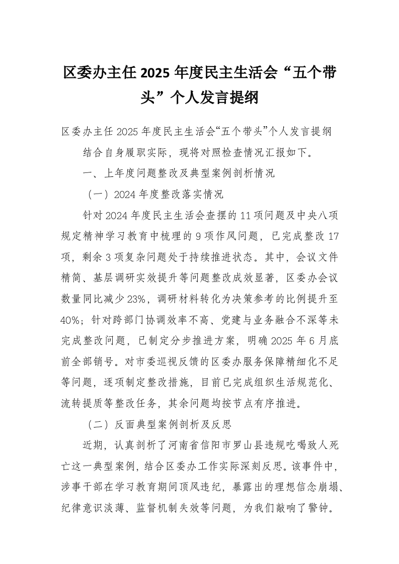 区委办主任2025年度民主生活会“五个带头”个人发言提纲