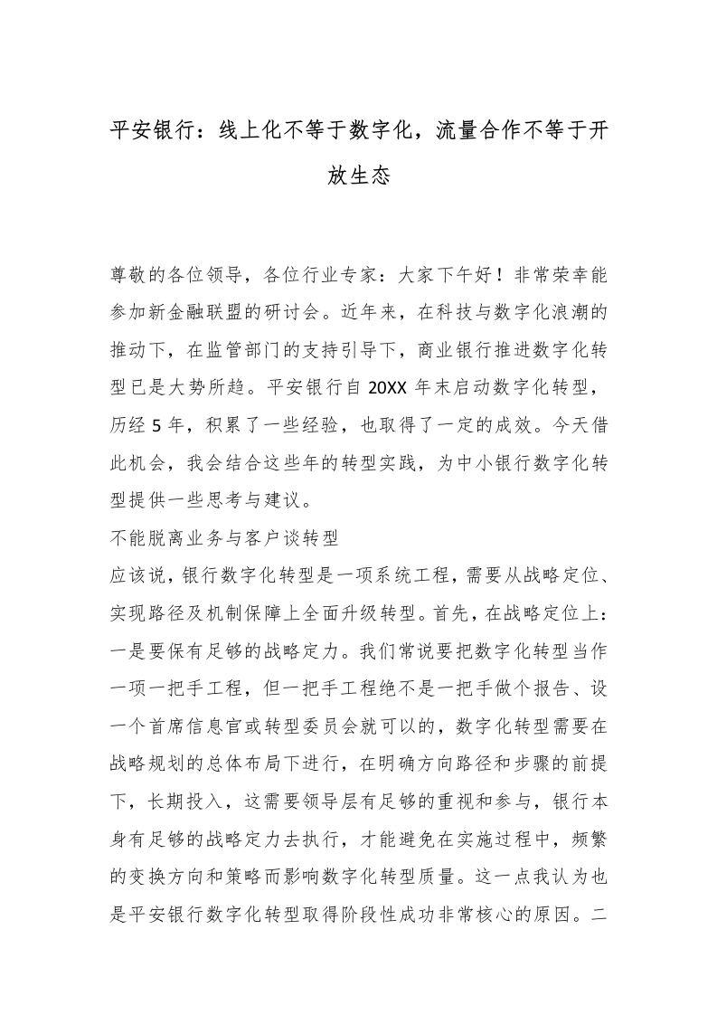首页精选范文平安银行:线上化不等于数字化,流量合作不等于开放生态_副本