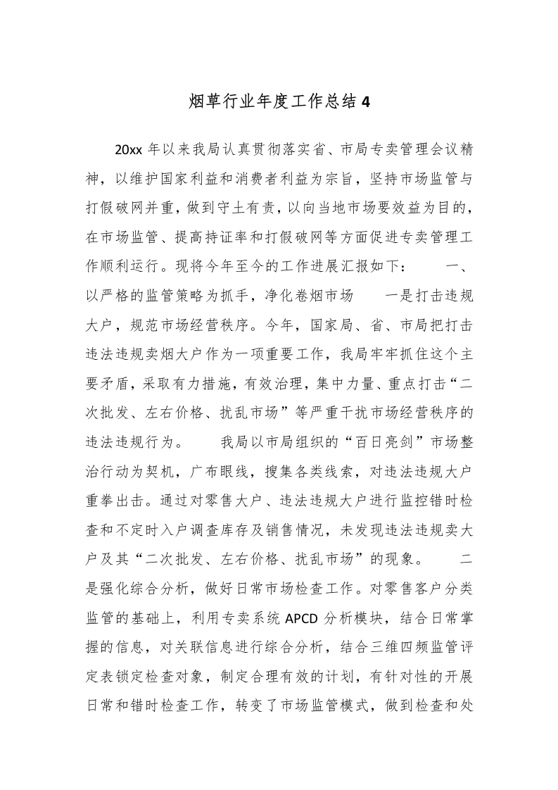 烟草行业年度工作总结4_副本