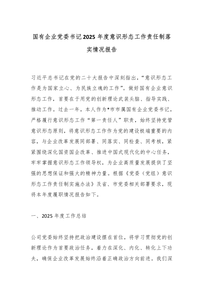 国有企业党委书记2025年度意识形态工作责任制落实情况报告_副本