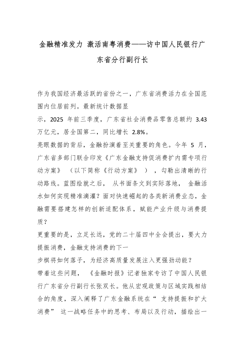首页精选范文金融精准发力 激活南粤消费——访中国人民银行广东省分行副行长_副本