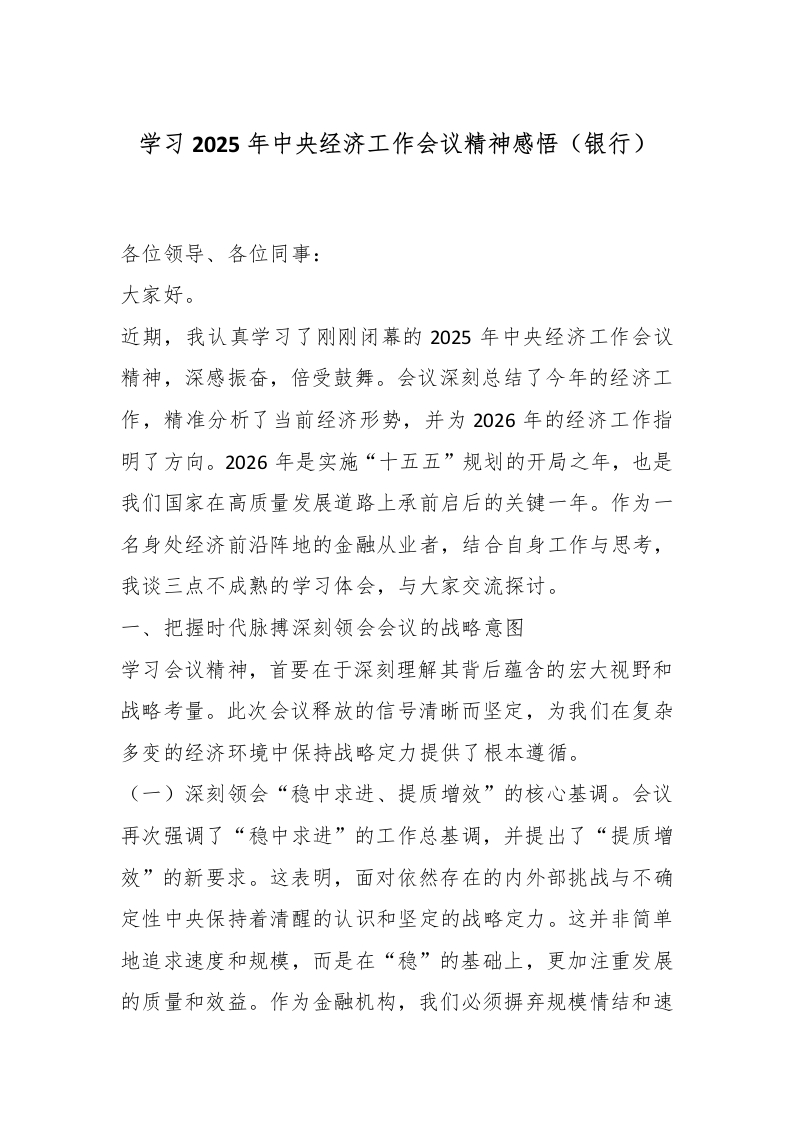 学习2025年中央经济工作会议精神感悟(银行)_副本