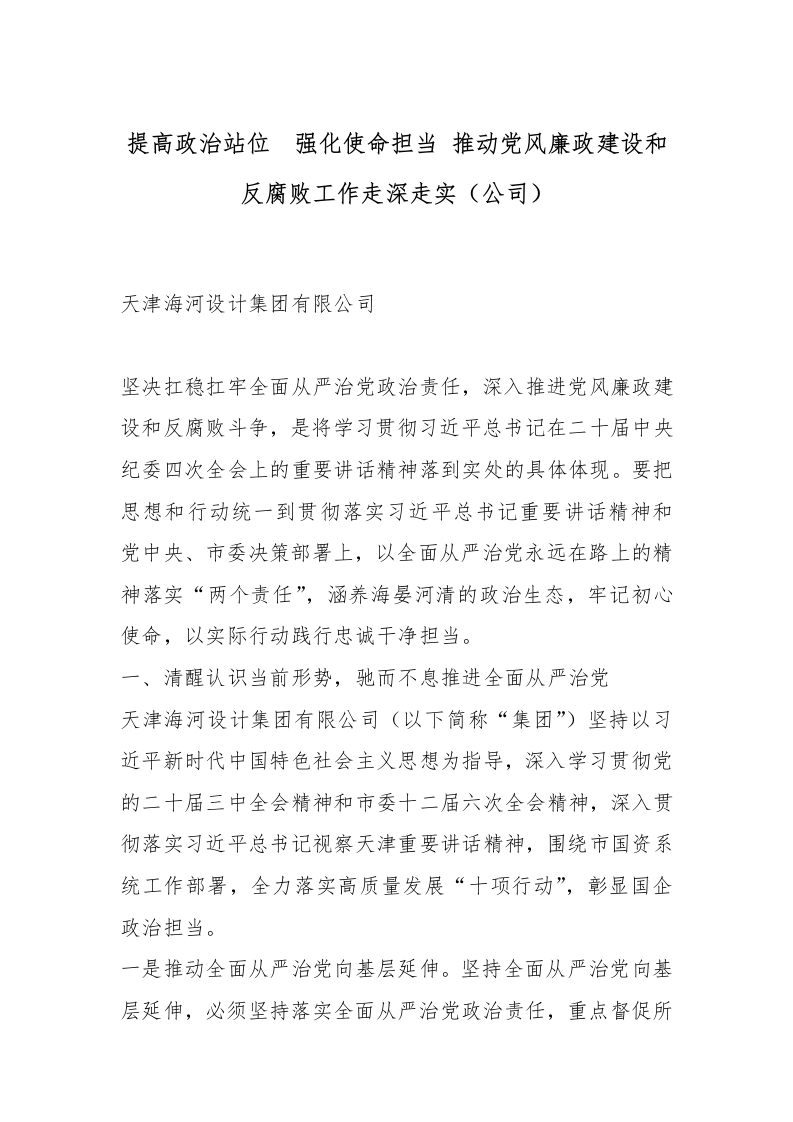 提高政治站位 强化使命担当 推动党风廉政建设和反腐败工作走深走实(公司)_副本