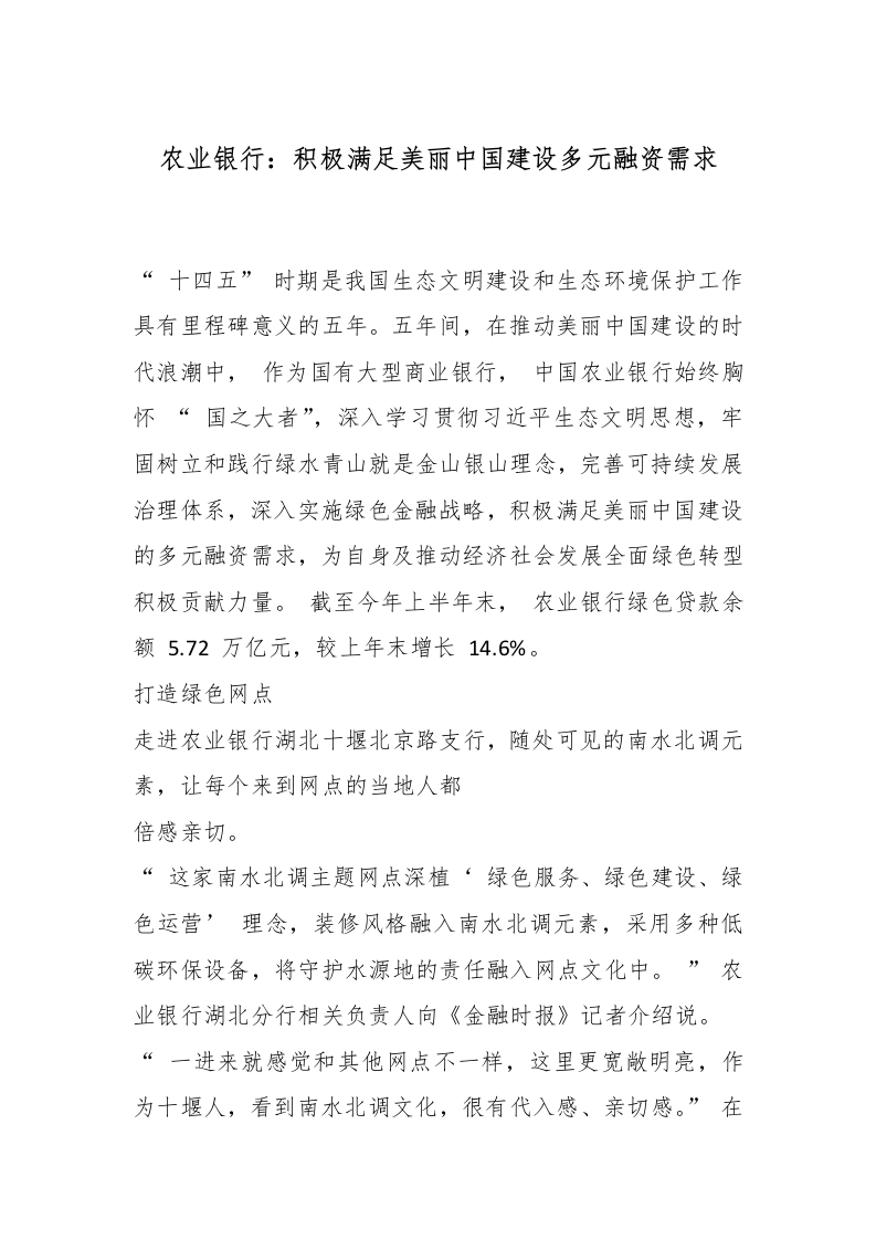 首页精选范文农业银行:积极满足美丽中国建设多元融资需求_副本