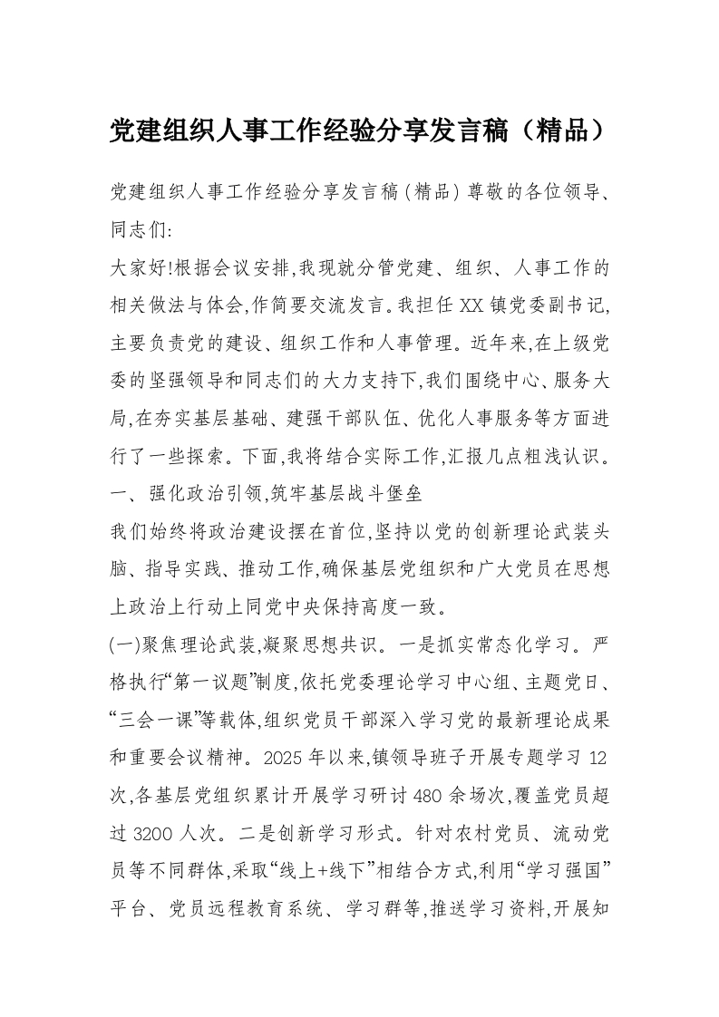 首页材料汇编党建组织人事工作经验分享发言稿(精品)