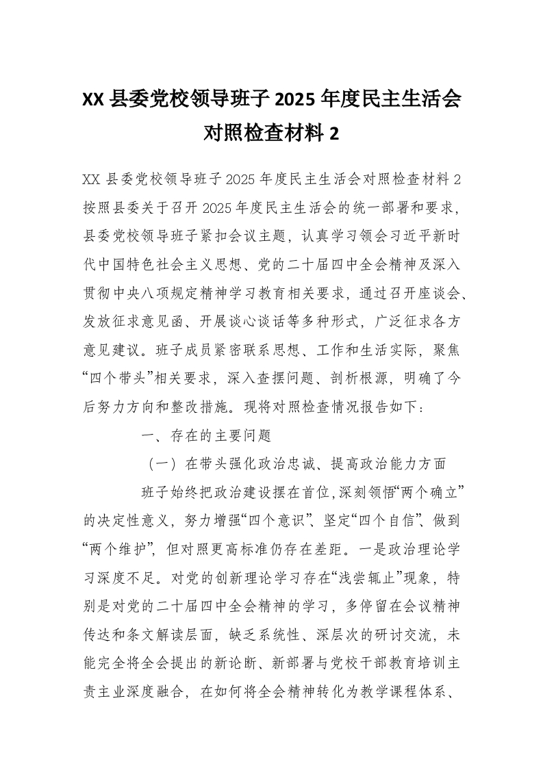 首页材料汇编XX县委党校领导班子2025年度民主生活会对照检查材料2
