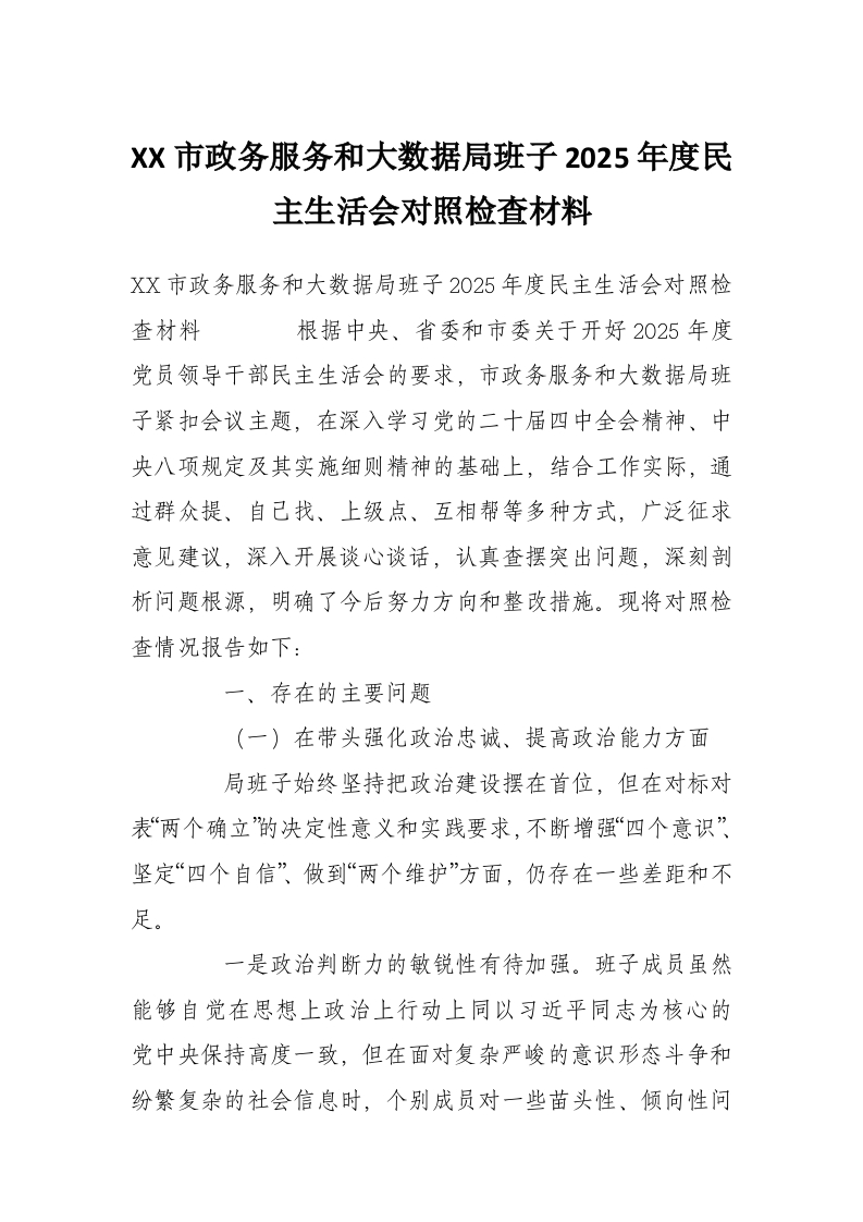 XX市政务服务和大数据局班子2025年度民主生活会对照检查材料