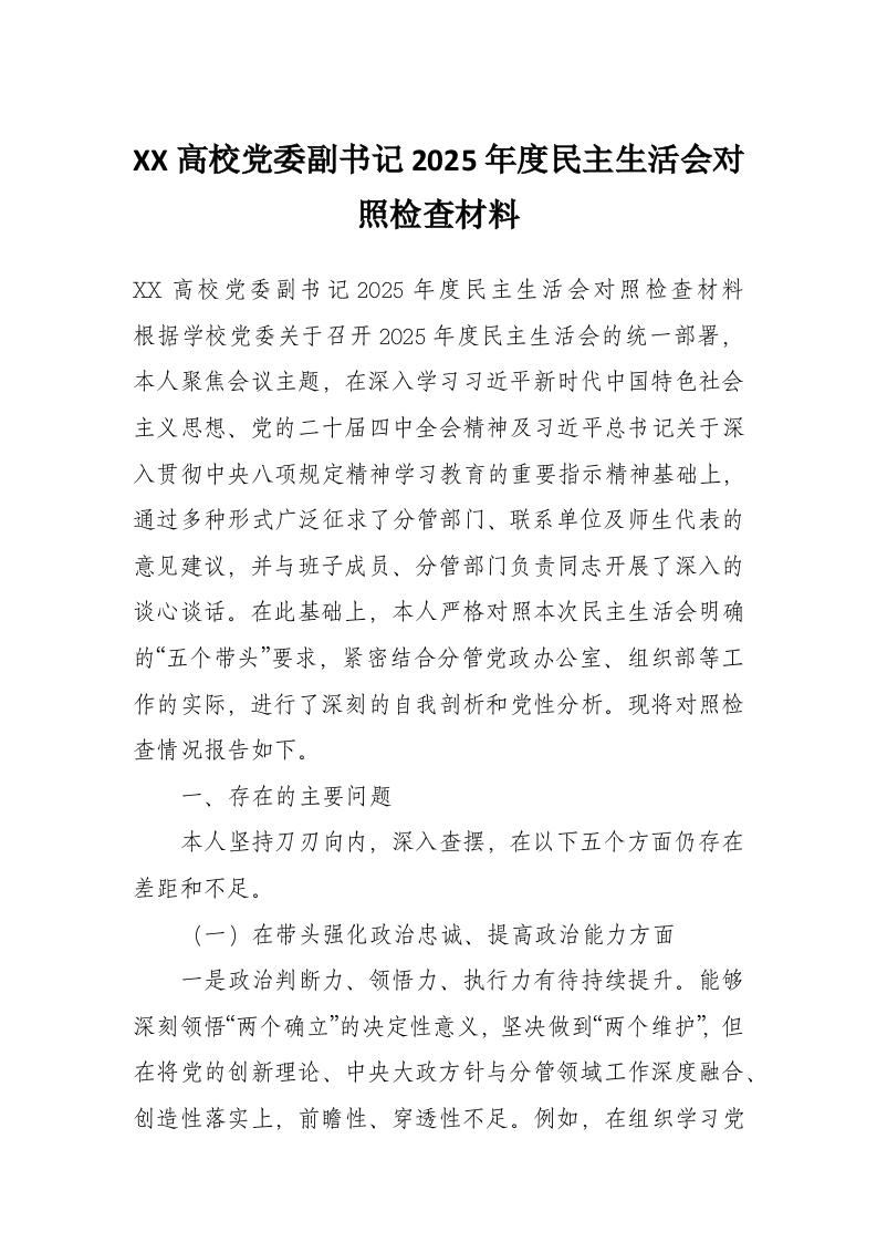 首页材料汇编XX高校党委副书记2025年度民主生活会对照检查材料