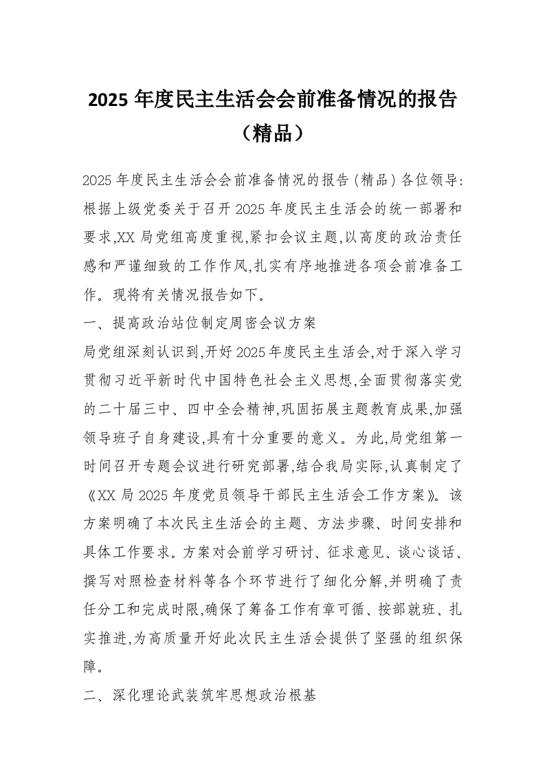 2025年度民主生活会会前准备情况的报告(精品)