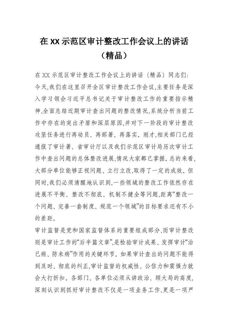 在XX示范区审计整改工作会议上的讲话(精品)