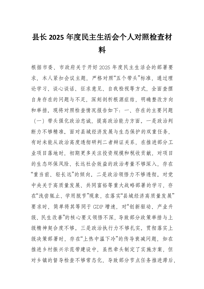 首页工作文档县长2025年度民主生活会个人对照检查材料