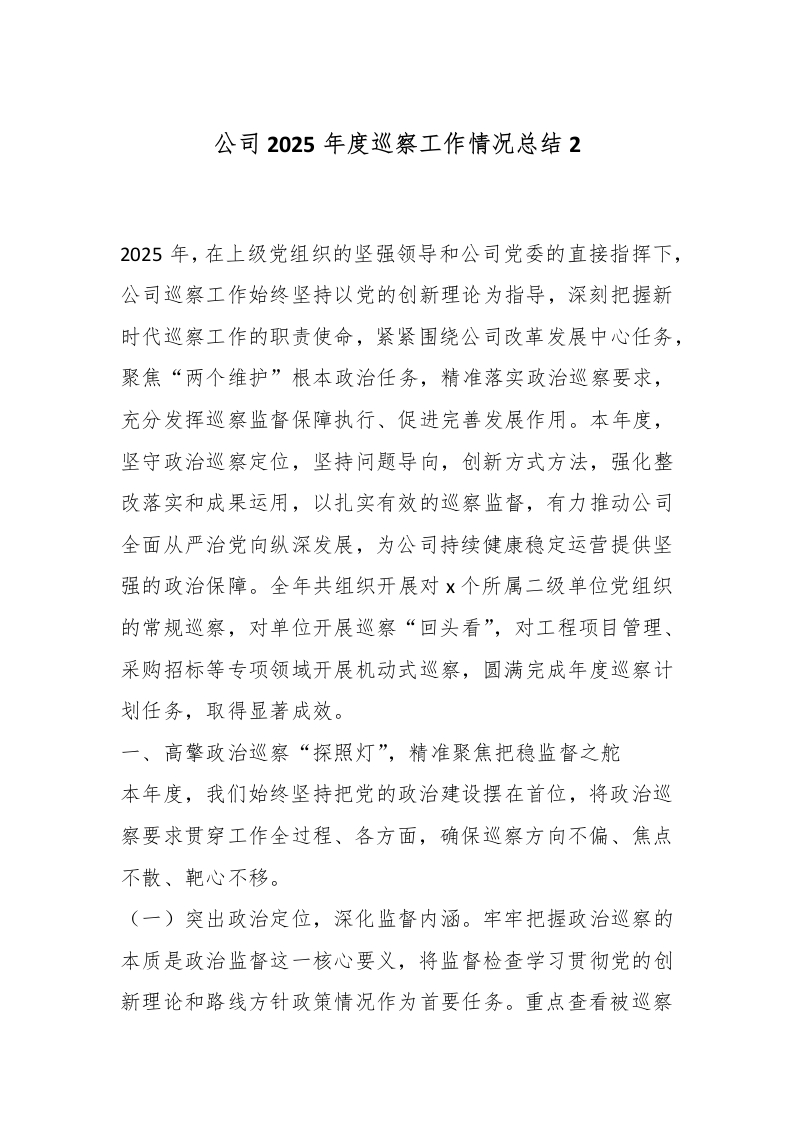 公司2025年度巡察工作情况总结2_副本