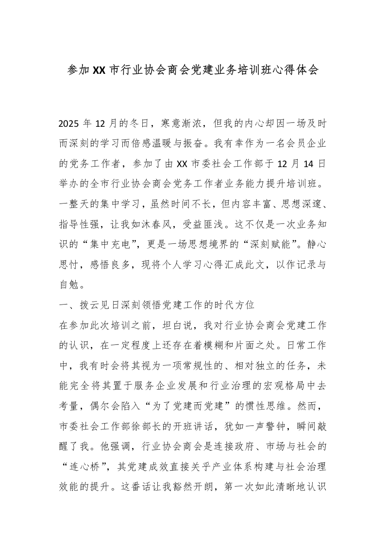 参加XX市行业协会商会党建业务培训班心得体会_副本