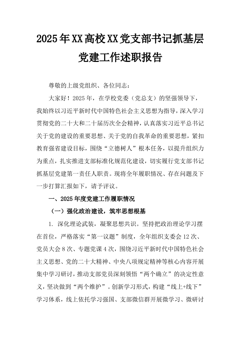 2025年XX高校XX党支部书记抓基层党建工作述职报告