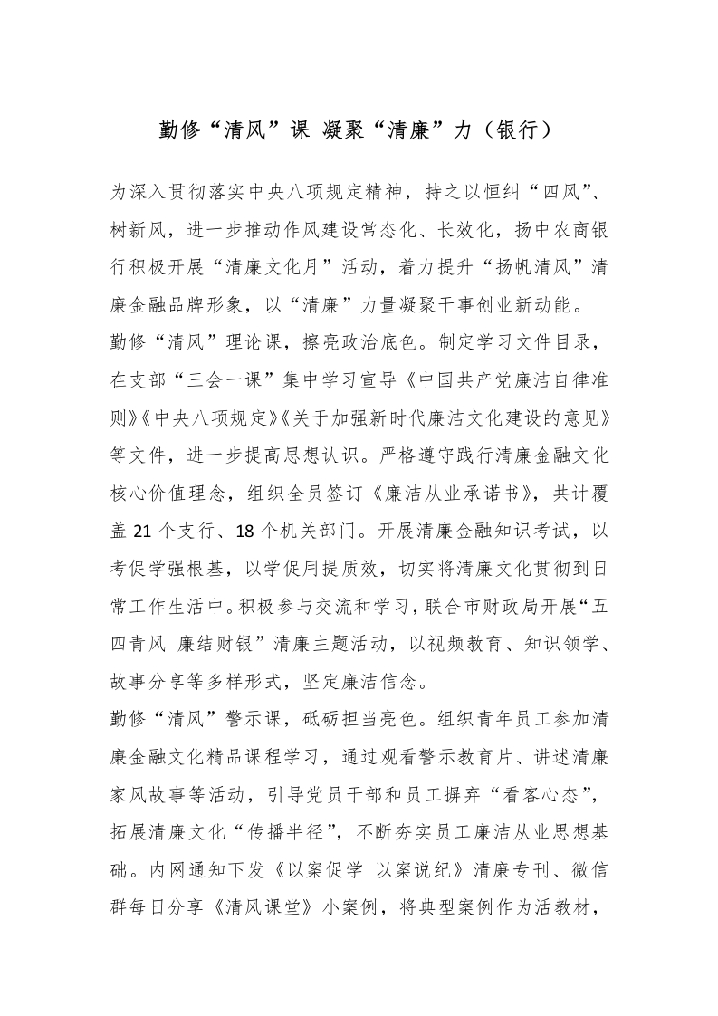 勤修“清风”课 凝聚“清廉”力(银行)_副本