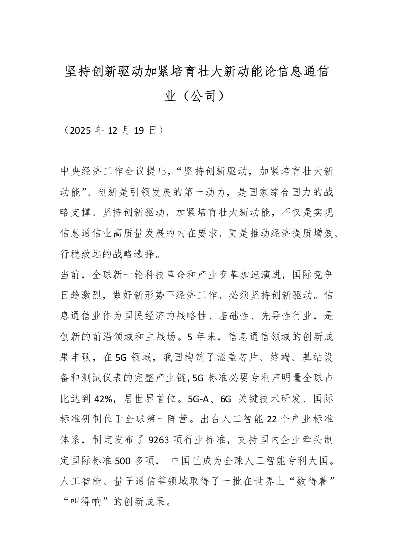 坚持创新驱动加紧培育壮大新动能论信息通信业(公司)_副本