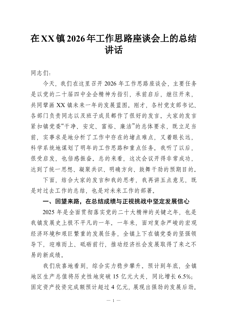 首页讲课讲稿在XX镇2026年工作思路座谈会上的总结讲话