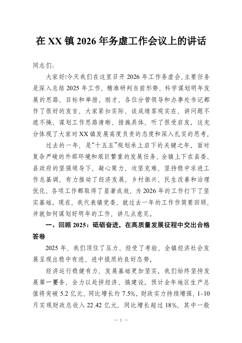 首页讲课讲稿在XX镇2026年务虚工作会议上的讲话