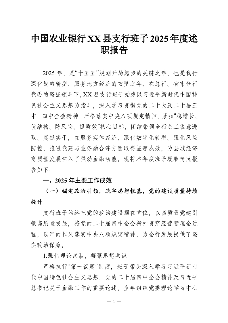 首页写作素材中国农业银行XX县支行班子2025年度述职报告