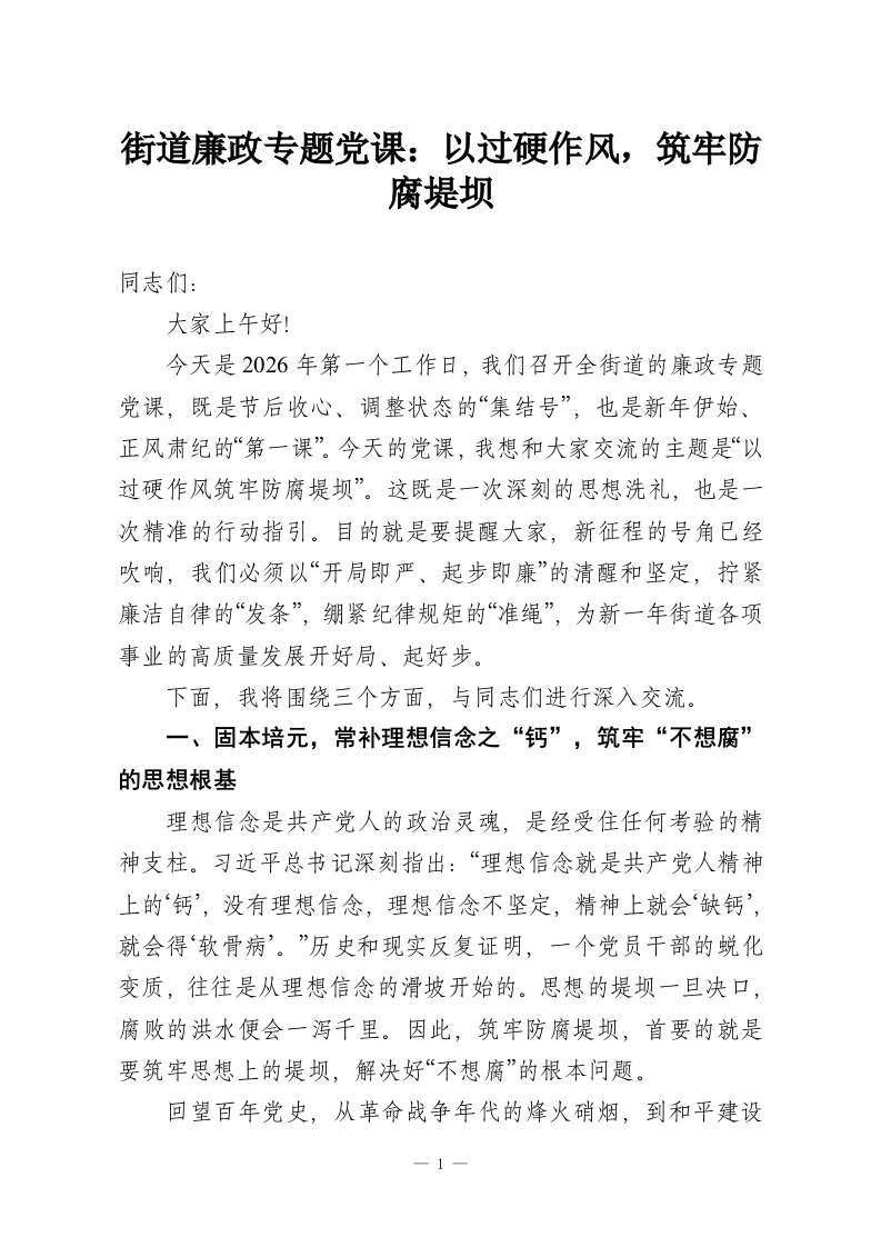 首页写作素材街道廉政专题党课:以过硬作风,筑牢防腐堤坝