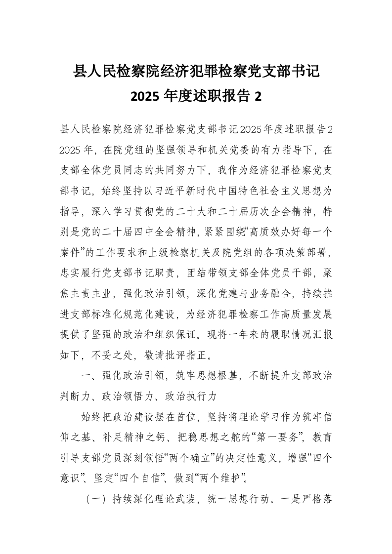 首页工作文档县人民检察院经济犯罪检察党支部书记2025年度述职报告2