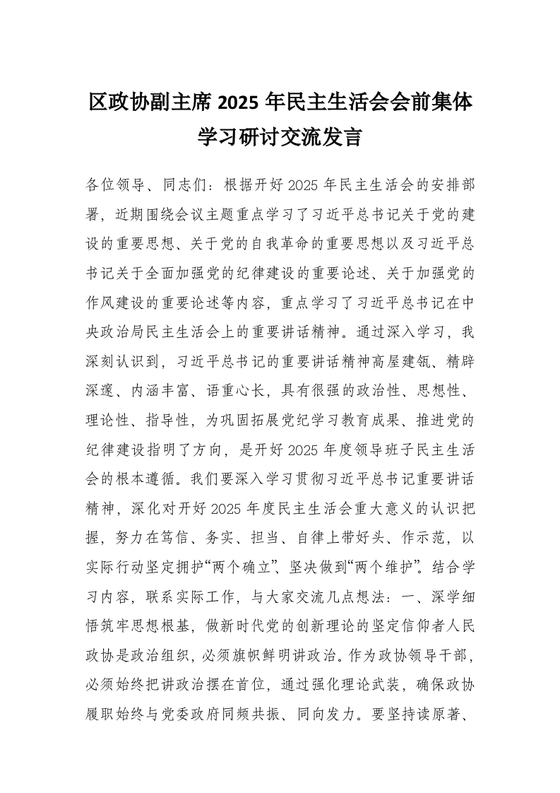 区政协副主席2025年民主生活会会前集体学习研讨交流发言