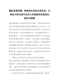 廉政党课讲稿:持续深化党的自我革命,为推进中国式现代化伟大实践提供坚强的纪律作风保障