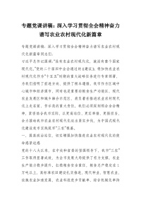 专题党课讲稿:深入学习贯彻***精神奋力谱写农业农村现代化新篇章