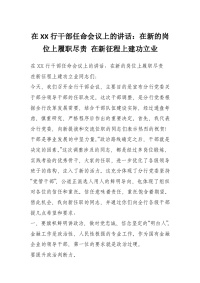 在XX行干部任命会议上的讲话:在新的岗位上履职尽责 在新征程上建功立业