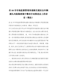 在XX市市场监督管理局道路交通安全车辆源头风险隐患集中整治行动推进会上的讲话(精品)