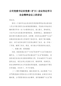 公司党委书记在党委(扩大)会议传达学习***精神会议上的讲话