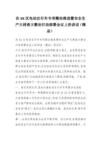 在XX区电动自行车专项整治推进暨安全生产大排查大整治行动部署会议上的讲话(精品)