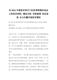 在2025年底收官和开门红旺季营销启动会上的发言材料:锚定目标 攻坚破难 加压奋进 全力打赢年底收官硬仗