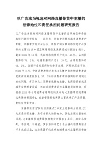 以广告法为视角对网络直播带货中主播的法律地位和责任承担问题研究报告
