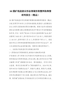 XX煤矿统战意识形态领域形势暨网络舆情研判报告(精品)