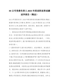 XX公司党委负责人2025年度述职述责述廉述学报告(精品)